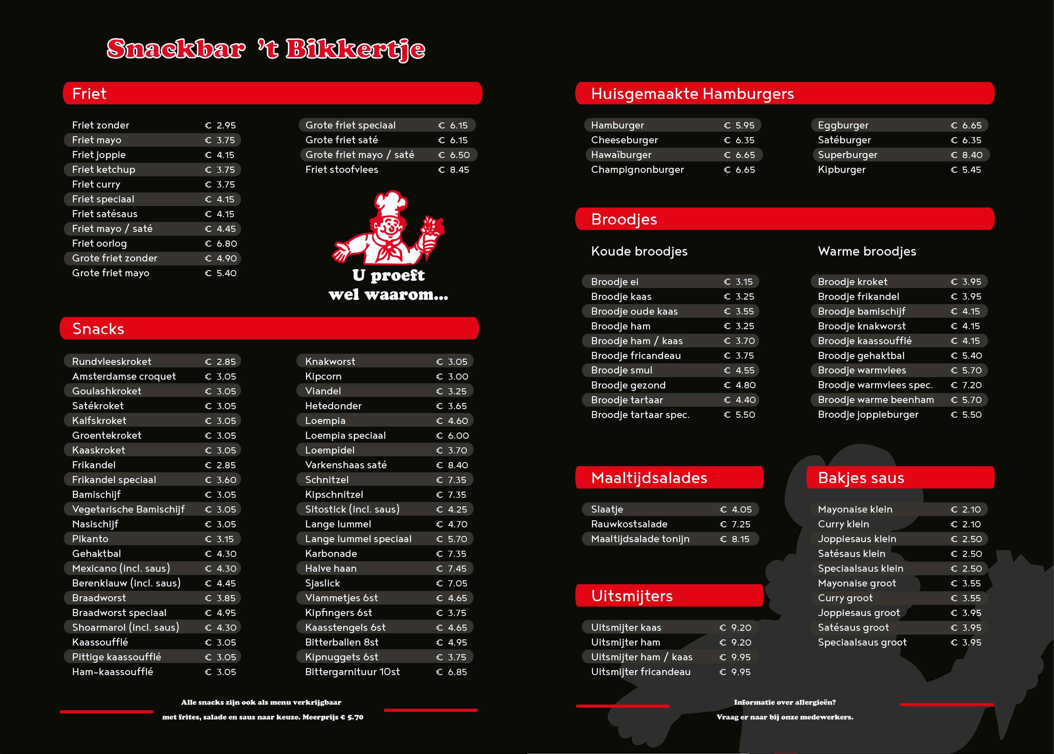Om een idee te geven van onze producten kunt u online onze menukaart bekijken.